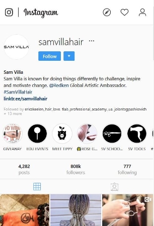 Sam Villa – один из самых уважаемых и любимых профессионалов и преподавателей парикмахерского искусства в мире. Помимо 800 000 подписчиков в Instagram и около 400 000 последователей в Facebook, у него более 700 000 последователей на YouTube. Людям нравится смотреть его увлекательные образовательные видео.