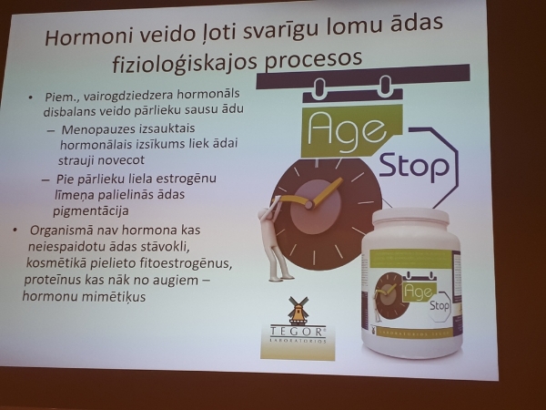 На конференции лектор Agrita Aizsila раскрыла 9 теорий старения кожи, каждая из которых имеет свое научное обоснование и медицинские исследования. В соответствии из каждой из теорий старения сегодня существуют определенные методы и косметические средства для приостановки возрастных изменений тела и кожи человека, а также ее восстановления и лечения при определенных медицинских показаниях.