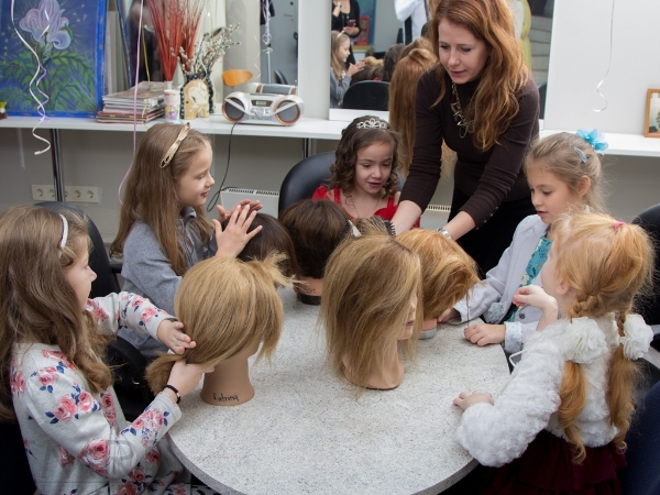 draudzenes, kurām pēc tam arī taisu frizūras. Tad visas ir sapucētas, sēžas pie galda, ēd, sarunājas, spēlējas. Pēc tam es rīkoju ekskursiju pa salonu un stāstu, kādu profesiju pārstāvji pie mums strādā. Ir arī amizanti gadījumi. Kad jautāju, kas jūs sagaida skaistumkopšanas salonā, atbild: pārdevēja, kasiere un pat stjuarte. Es viņām stāstu, kas ir administrators, kas strādā ar matiem, kas ar nagiem, bet kas ar seju. Tad mēs iznesam manekenu galvas. Es sarīkoju nelielu meistarklasi, stāstu, kā jārūpējas par matiem, kā tie jāķemmē un jāmazgā. Pēc tam iedodu viņām matu saspraudes, un sākas fantāziju lidojums, jo viņas veido savas frizūras.