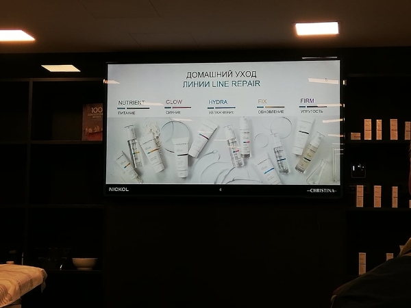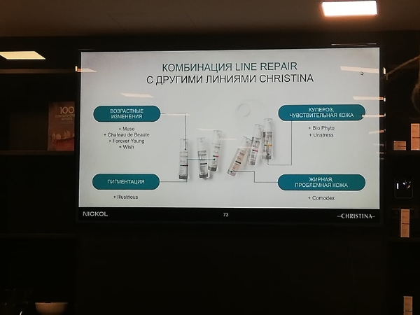 Ar jauno Line Repair līniju kosmetologus iepazīstināja vieslektore no Ukrainas Anna Budinskaja. Viņa pastāstīja ne tikai par profesionālajām, bet arī mājas kopšanas programmām. Kosmetologi uzzināja gan par aktīvajām vielām un to iedarbību, gan par līdzekļu priekšrocībām, gan par kosmētikas līdzekļu saderību ar citām Christina Laboratories līnijām.