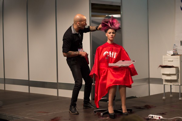 Uz skatuves tiek demonstrēts divu dāmu griezumu tehnika un astoņu modeļu frizūru kolekcija. Uz skatuves Rokijam palīdzēja CHI -FAROUK radošais partneris, Latvijas frizieris Igors Popovs.