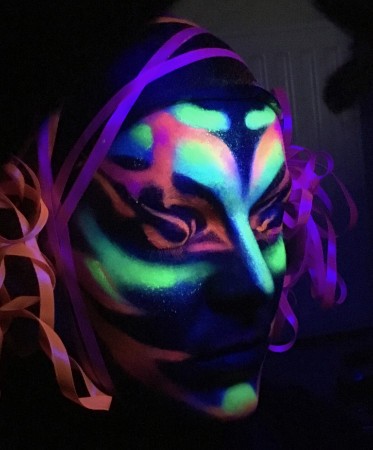 Izmantojot reklāmas kompozīciju un krāsas, māksliniece veidoja modeles tēlu, pārnesot krāsas uz sejas. Improvizējot un improvizējot... Grims iespaidoja ar savu maģiju – kad uz tevi „skatās” uz plakstiņiem uzzīmētās acis, bet tad atveras īstās acis! Kad viss tēls sāk mirdzēt tumsā! Rodas sajūta, ka notiek kaut kas mistisks un nereāls. Diemžēl „Nike” to neredzēja...