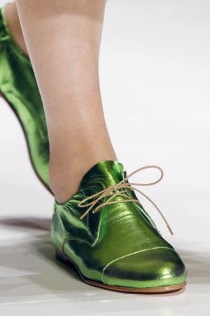 Lietišķais dreskods gaidāmajā pavasarī sumina pelēkas krāsas bikškostīmus ar spilgti zaļu zīda topu, bet ballītēs tā vien prasās pēc pieguļošas mini kleitas sulīgā pavasara tonī. Gaiši zaļas krāsas kleitu vai svārkus nākas nēsāt ar atbilstošiem apaviem – tāpēc modē atgriežas lakādas laiviņas visos zaļās krāsas toņos, kā arī sandales un loferi jebkurai gaumei.