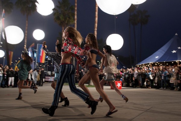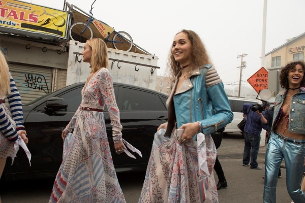 Iedvesmojoties no stilīgās Kalifornijas vides, Eižens Soleimans pārvērta Tommy Hilfiger modeles – tostarp Džidži un viņas māsu Bellu – īstās pludmales skaistulēs ar vēja izpūstiem matiem.