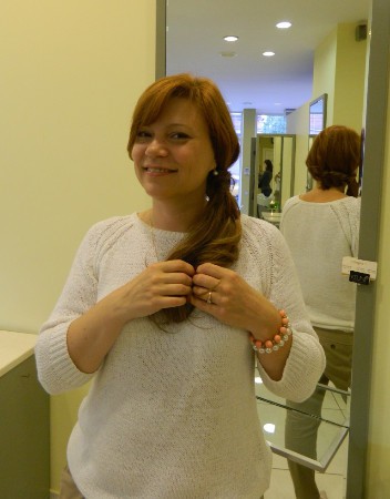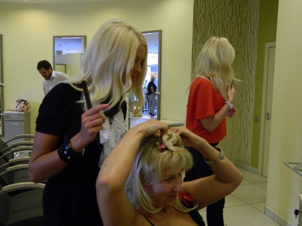 Kāpēc gan nepamēģināt arī man? Atrast šķipsnas, kuras piestāvētu manai matu krāsai, neizdevās uzreiz, jo sortimentā ir liela pieliekamo matu krāsu un variantu daudzveidība. Hair Dress sastāv no vienas platas šķipsnas un nosedz visu galvas diametru. To ir diezgan viegli uzvilkt un piestiprinās ar nelielām iebūvētām saspraudēm. Friziere parādīja man, kā tās ir pareizi jāuzvelk, un to nav sarežģīti atkārtot pašai arī mājās. Kas iepatikās? Skaistais šķipsnu krāsojums (dažas ir izveidotas „ombre” tehnikā) un patīkamās izjūtas glaudot matus, kuri pēc taustes ir pilnīgi identiski dabiskajiem. Otrā pielaikošana arī bija ļoti iespaidīga – pie manas mazās astītes tika piestiprināta gara aste, un frizūra mani uzreiz pārvērta.