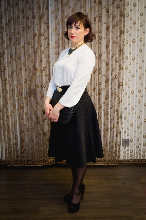 Jaunajā gadā mēs ļoti vēlamies sagaidīt brīnumu un iet pa visvieglāko ceļu – uzlaikot jaunu tēlu un atrasties citā laikā. Maza melna kleita, caurspīdīgas piedurknes, augsti papēži un grāmatvede Oksana jau ir gatava Jaungada ballei. Garās, slaidās kājas piesaista skatienu, bet matu rotājums, kurš atgādina nelielu cepuri, uzvēdī atmiņas par laiku, kad sievietes bija noslēpumainas.