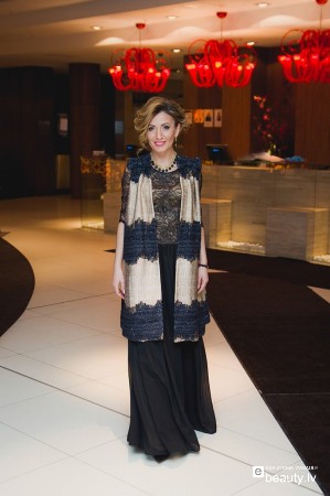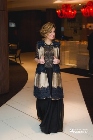 Vakara komplekts ietver garu kleitu, kuru papildina apmetnis bez piedurknēm, kurš ir ieturēts melni zeltītā krāsu gammā. Tādā tērpā var mirdzēt, apbrīnot, apburt un iekarot. Protams, ka tādu tērpu rotā tonī piemeklēti aksesuāri un akurāta, eleganta vakara frizūra. Mati ir savākti augstāk, atsedzot kaklu. Vakarkleita ar mežģīnēm tērpa augšdaļā izskatās neticami pievilcīga. Pat bez dekoltē tā izceļ krūšu daļu. Taisnstūra siluets, apvienojumā ar paplašinātu un gaisīgu tērpa apakšējo daļu, padara figūru vēl slaidāku. Vakartērpam ir jāatspoguļo meitenes garastāvoklis, un jāliek justies kā zvaigznei!