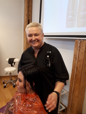 Никто не удивился великолепным результатам процедур. Волосы стали выглядеть заметно лучше, слушатели могли лично убедиться, насколько изменились и вид и структура волос, а на лицах моделей сияли улыбки. Свою роль в создании приятной атмосферы сыграла и кофейная пауза с булочками и разговоры гостей том, что AURA – это подлинная магия облика.