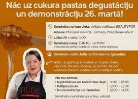 Nāc uz cukura pastas degustāciju un demonstrāciju 26. martā! Piesakies un iepazīsti mūsu šugaringa produktus klātienē! Izmēģiniet mūsu cukura pastas un apskatiet tās darbībā! Lieli...