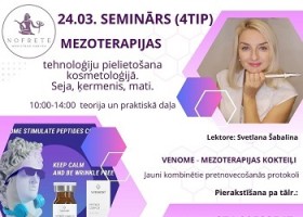 Venome - mezoterapijas kokteiļi. Jauni kombinētie pretnovecošanās protokoli. Procedūru demonstrēšana, praktiskās nodarbības. Lektors: Svetlana Šabalina - skolas “BEAUTY SCHOOL” dib...