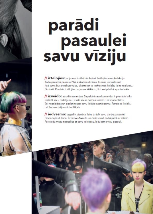 Izveido savu redzējumu ar satriecošu fotogrāfiju un pēc tam atveido to starptautiskajā konkursā “dzīvajā”. Konkurss ir paredzēts visiem kaislīgajiem stilistiem koloristiem, kas gatavi sacensties krāsu pasaulē.