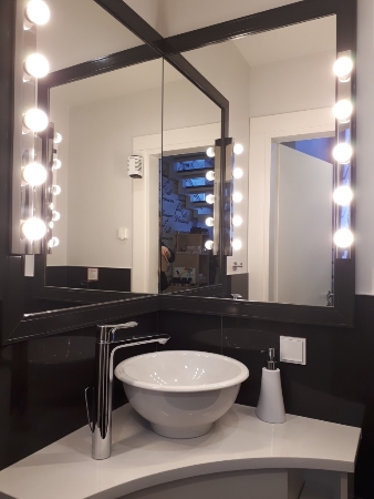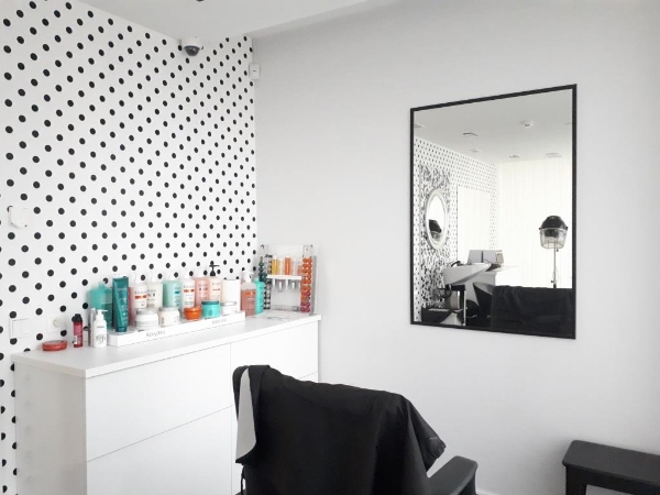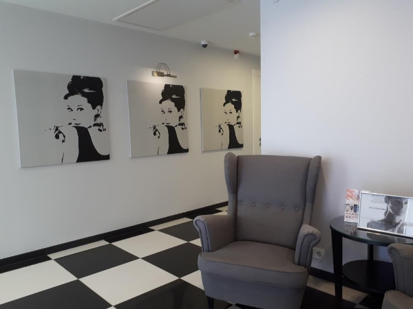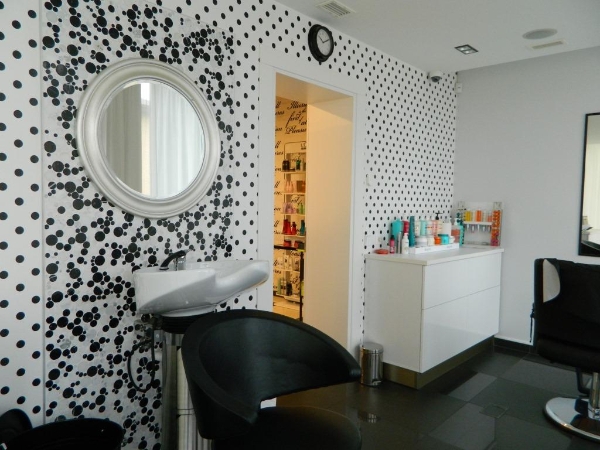 Interjera ideja ir salona īpašnieču un dizainera kopējais radošuma iemiesojums. Noformējums ir izveidots klasiskajā melnbaltajā stilā, kurš sasaucas ar agrīnās Holivudas tēliem. Uzmanību acumirklī pievērš stilīgā administratora lete, raksts ar melnbaltajiem riņķiem un melnbaltās šahveida flīzes uz grīdas. Un pat tualetes te ir noformētas kā grimētavas.